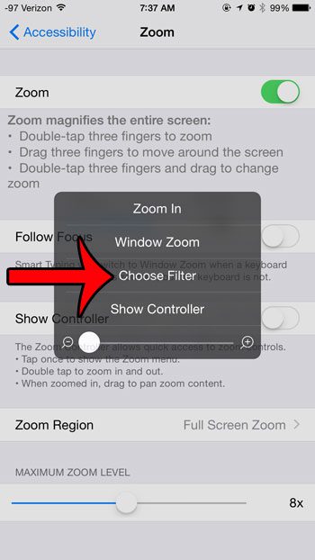 ステップ6:3本の指を同時に使用して、画面を3回連続してタップし、次に選択します。フィルターを選択しますオプション。