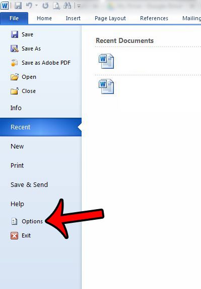 ステップ3:クリックしますオプション窓の左側にある列の下部に。これは、呼ばれる新しいウィンドウを開く予定です単語オプション。