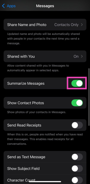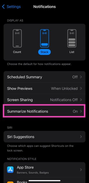 iOS 18のAIを完全に、または特定のアプリのみの場合のみオフにできます。行きます設定> Apple Intelligence&Siri前者のトグルスイッチをオフにします。 iPhoneの通知の概要が必要ない場合設定>通知>プレビューを要約しますトグルスイッチをオフにします。メッセージの概要をオフにするには、に移動します設定>アプリ>メッセージ「メッセージの要約」の横にあるトグルスイッチをオフにします。