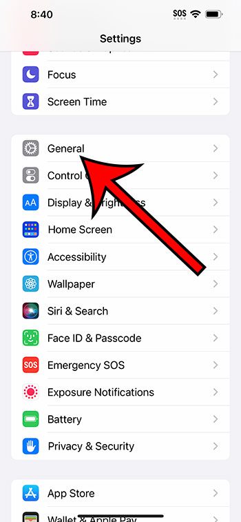 ステップ2:下にスクロールして選択します一般的なオプション。