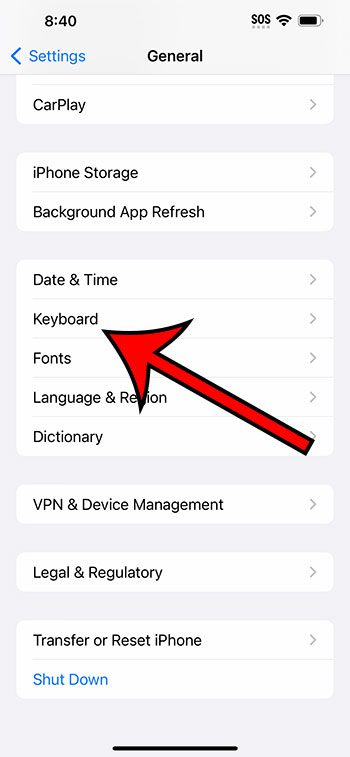 iPhone 14の自動正しい設定をオフにすることができます設定>一般>キーボード>その後、オフになります自動修正。