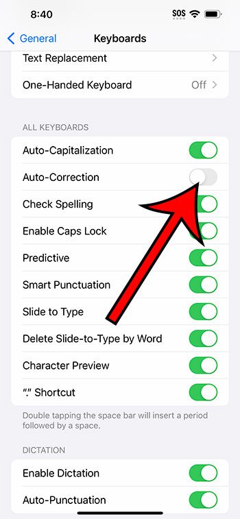 ステップ4:右側のボタンをタップします自動修正それをオフにします。