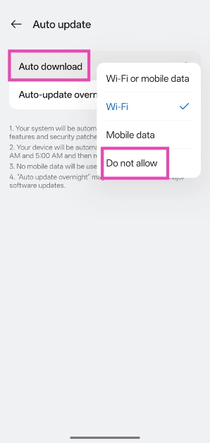 ステップ4:タップします自動ダウンロード選択します許可しないでくださいドロップダウンメニュー。