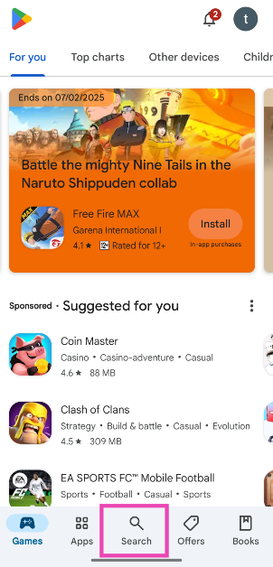 ステップ1: 打ち上げお使いの携帯電話のGoogle Playストアアプリと検索タブ。