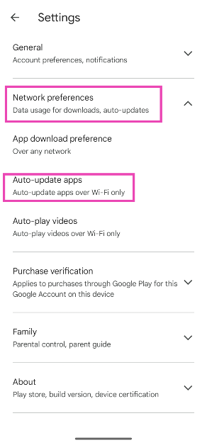 ステップ3:タップしますネットワーク設定選択しますAuto-UpDateアプリ。
