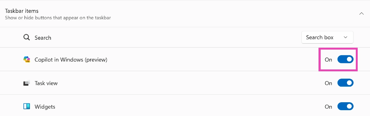 ステップ3:を選択しますWindows Copilotをオフにします'設定。