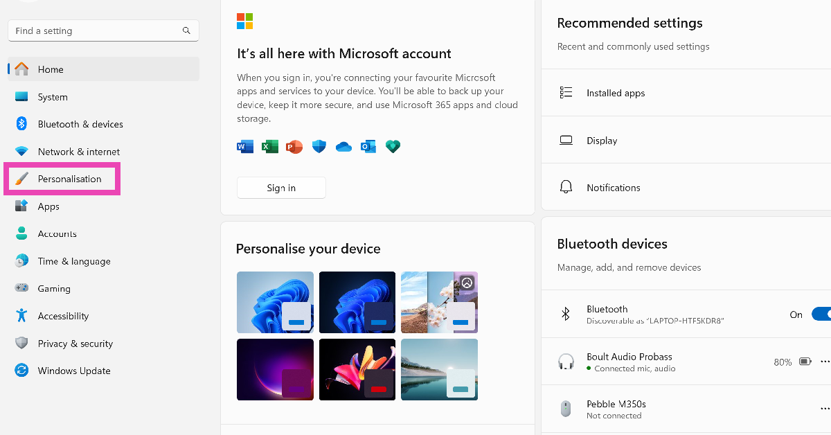 ステップ1:起動します設定Windows 11 PCまたはラップトップのアプリ。