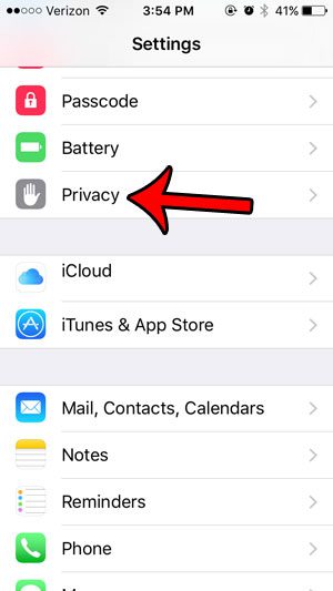 ステップ2:下にスクロールして選択しますプライバシーオプション。