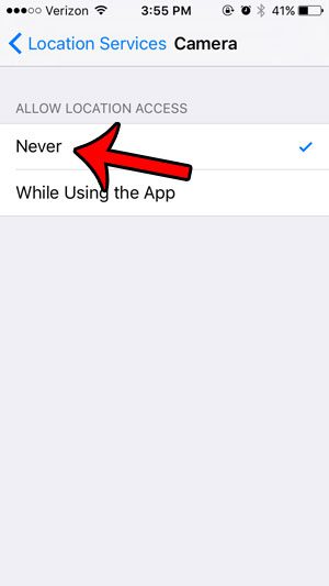 これにより、iPhoneがiPhoneカメラで撮影した写真にロケーションメタデータを適用するのを止めます。これは、iPhoneの他のアプリやサービスのロケーションサービスをオフにしません
