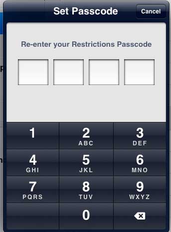ステップ3:タッチします制限画面の右側にある列のボタン。