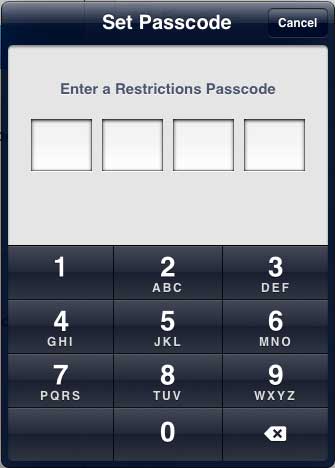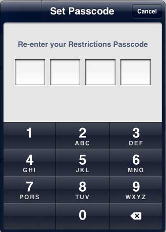 ステップ5:このメニューに戻ってデバイスの制限を管理するために入力する必要があるパスコードを入力します。