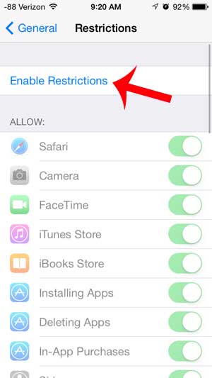 ステップ4:青に触れます制限を有効にします画面の上部にあるボタン。