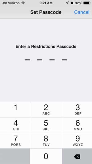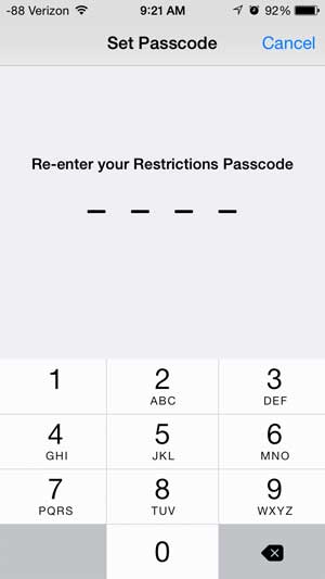 ステップ5:この画面にアクセスし、デバイス上のこれらの設定を変更するために必要なパスコードを作成します。