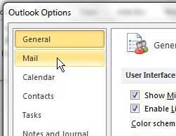 ステップ4:クリックします郵便の左側のタブOutlookオプションウィンドウ。