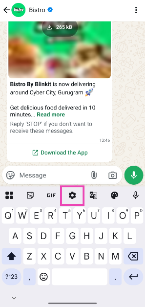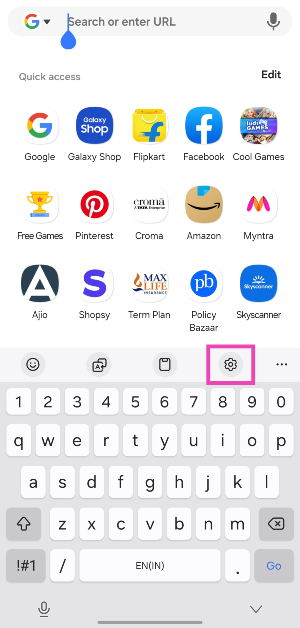 ステップ1:タップします設定アイコンSamsungキーボードのツールバーで。または、に移動します設定>一般管理>Samsungキーボード設定。