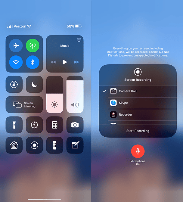 上記の手順に従っている場合に気付くかもしれないのは、画面の録音に音がないことです。実際、画面を録画して、マイクからオーディオをピックアップできます。コントロールセンターに画面録画ボタンをすでに追加したと仮定して、それを行う方法は次のとおりです。