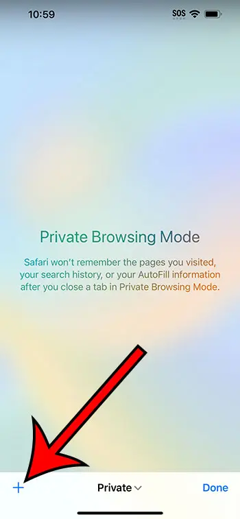 ステップ5:タップします+画面の左下隅にあるボタンは、プライベートブラウジングタブを開きます。