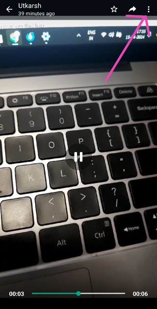 WhatsAppのデスクトップアプリとWebポータルは、少なくとも1回はずっと再生された後、ビデオをダウンロードするオプションを提供するだけです。ビデオをロードして再生します。ビデオが終了すると、画面の右上のセクションにダウンロードアイコンが表示されます。