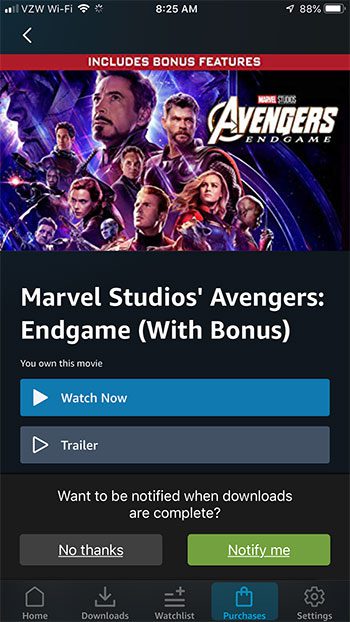 しかし、旅行をするつもりで、インターネット接続が十分に良くない場合、またはセルラー接続のストリーミングビデオに沿ったすべてのデータを使用することに関心がある場合は、代わりにAvengersのエンドゲームをiPhoneにダウンロードするオプションがあります。