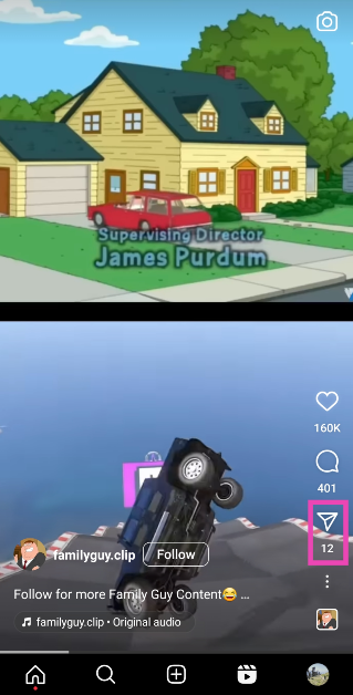 リールを開き、ヒットします共有アイコン、および選択ダウンロード。リールは、デバイスのメディアギャラリーの「Instagram」フォルダーに保存されます。