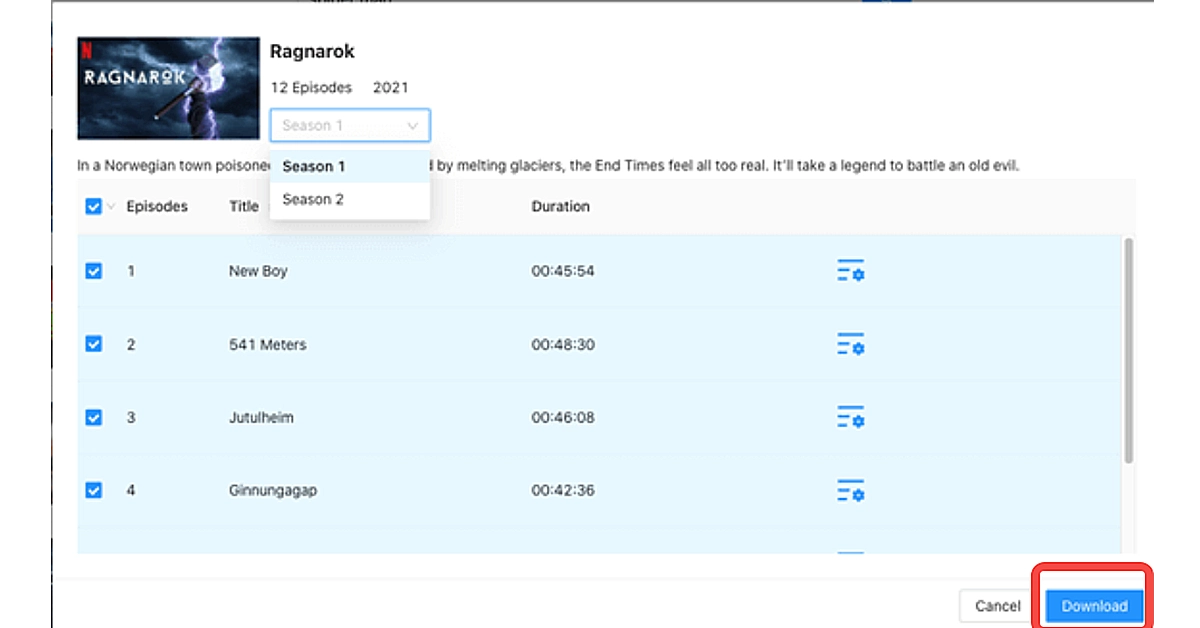 ステップ3:選択したNetflixビデオをダウンロードします。単一の映画の場合、右側のダウンロードボタンをクリックするだけです。テレビシリーズまたはショーについては、視聴したいエピソードを選択して、[ダウンロード]ボタンをクリックして、Macでオフラインにしておくようにします。