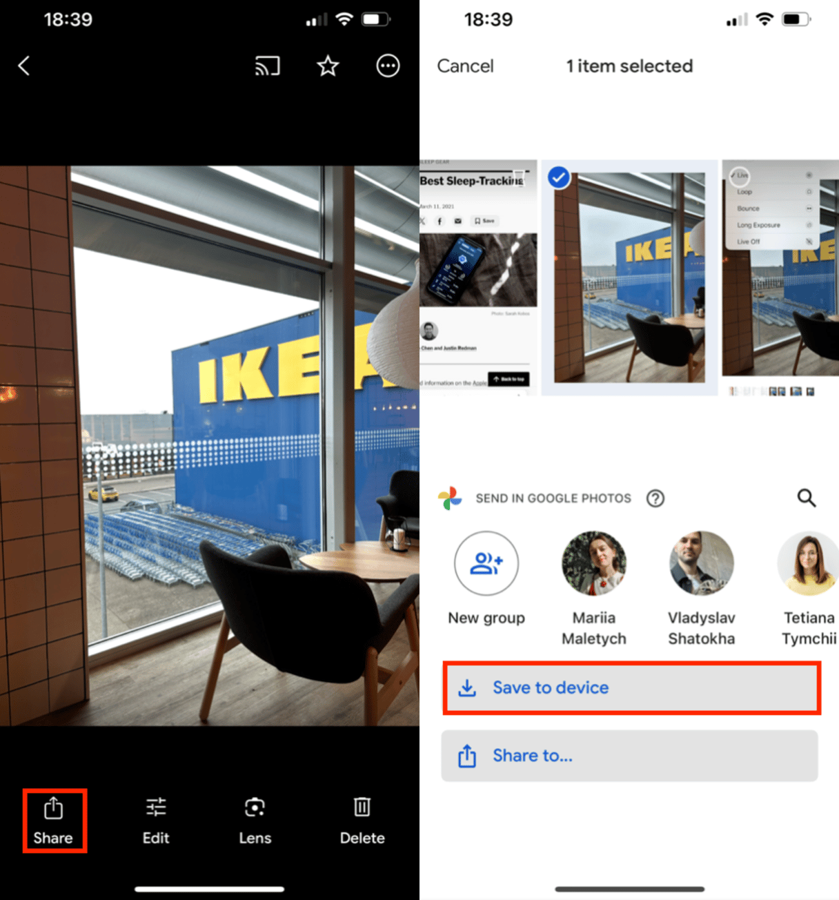 保存しようとしている写真のいずれかがすでにiPhoneにある場合、「デバイスへの保存」オプションは表示されません。