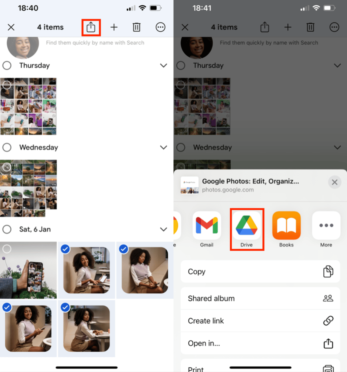 選択した写真のみをダウンロードしたい場合は、これはiPhoneのGoogle写真アプリで実行できます。
