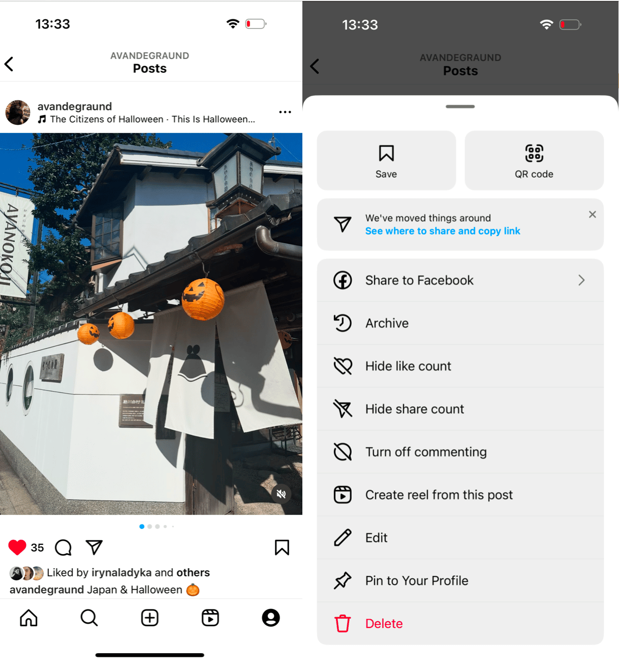 - Instagramを開いて、編集する投稿に移動します。