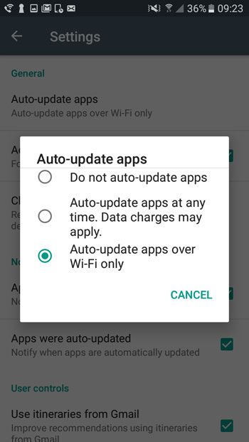 ステップ5:Android Marshmallow電話が自動アプリの更新を処理する方法を選択します。