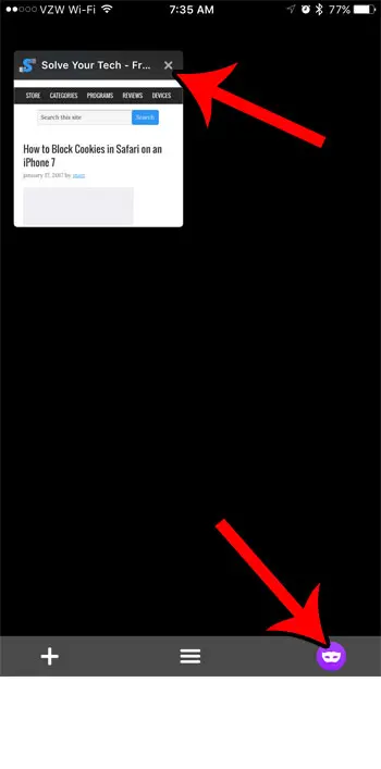 プライベートブラウジングセッションが終了したら、タブのアイコンを押してタブを閉じてから、xタブの右上隅にあるボタン。マスクアイコンをもう一度押すと、通常のブラウジングに戻ることができます。