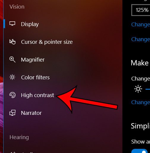 ステップ4:クリックします高いコントラストウィンドウの左側にあるタブ。