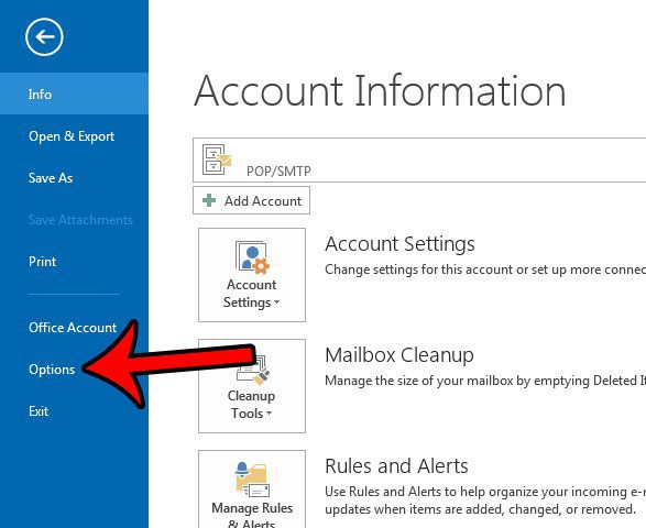 ステップ3:クリックしますオプションウィンドウの左側の列。