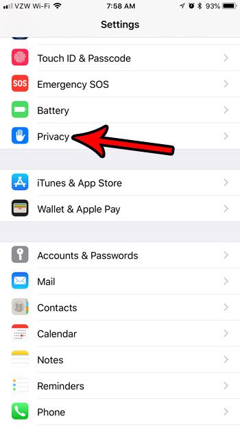 ステップ2:下にスクロールして選択しますプライバシーオプション。