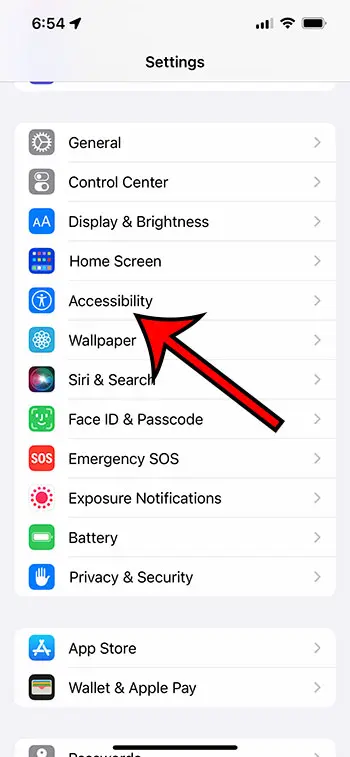 ステップ2:下にスクロールして選択しますアクセシビリティオプション。