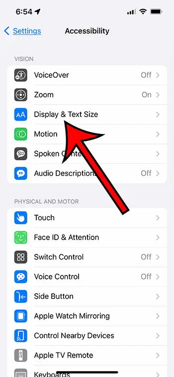 ステップ3:タッチします表示とテキストサイズメニューの上部近く。