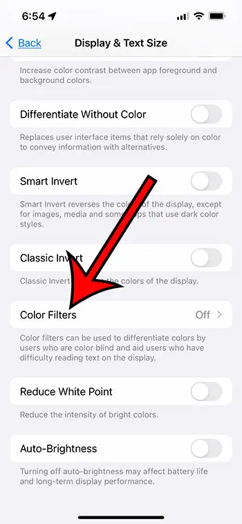 ステップ4:下にスクロールして選択しますカラーフィルターオプション。