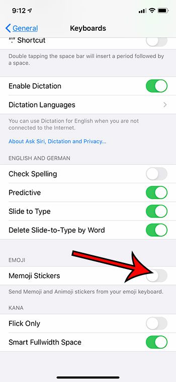 ステップ4:下にスクロールして、右側のボタンをタップしますMemojiステッカーそれをオフにします。
