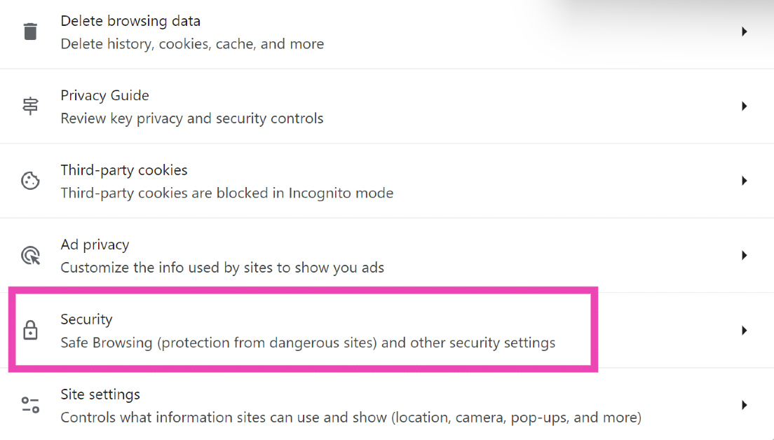 Chrome設定に移動して、選択しますプライバシーとセキュリティ>セキュリティ「安全なブラウジング」の下で「強化された保護」をクリックします。