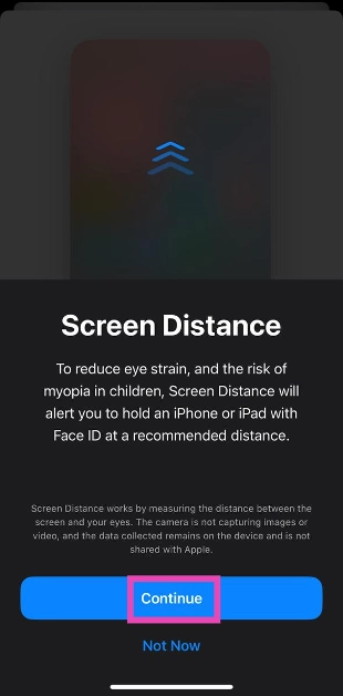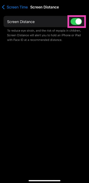 画面距離機能は、iPhoneの真の深度カメラを使用して、顔と画面間の距離を計算します。画面が顔に12インチ(30cm)を超えると、長期間にわたって近づいている場合、あなたのiPhone通知を発行して、それを知らせます。