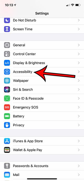 ステップ2:下にスクロールして選択しますアクセシビリティオプション。