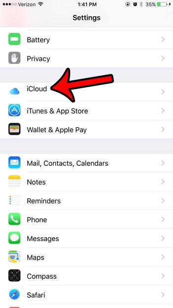 ステップ2:下にスクロールしてタップしますiCloudオプション。