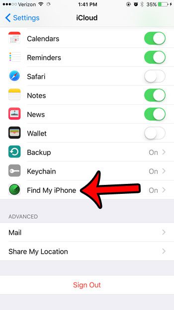- を選択します私のiPhoneを見つけてくださいオプション。