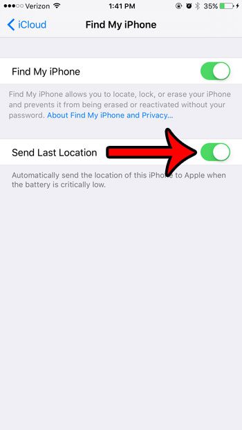 ステップ4:右側のボタンをタップします最後の場所を送信します設定をオンにします。ボタンの周りに緑色のシェーディングがあるときにオンになっていることがわかります。