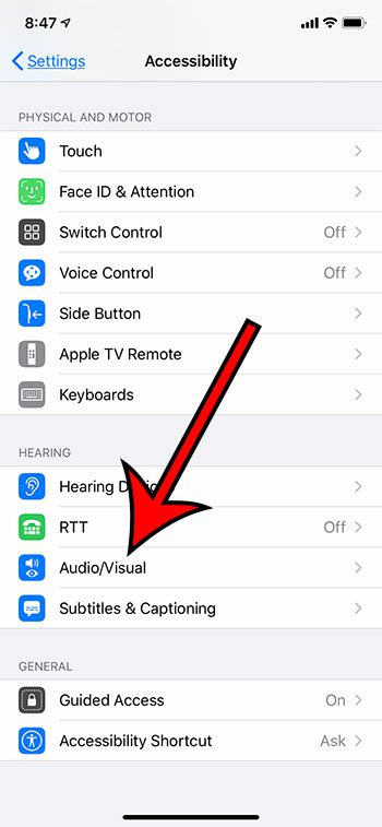 ステップ3:下にスクロールします聴覚セクションとタッチします視聴覚オプション。