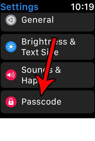 ステップ2:下にスクロールして選択しますパスコードこのメニューの下部にあるオプション。