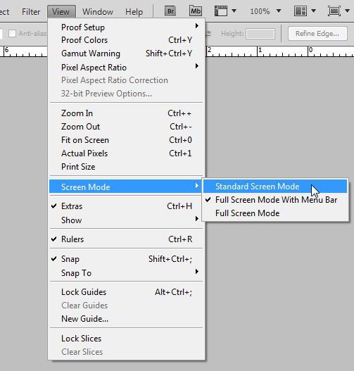 Photoshopでフルスクリーンモードを終了できるいくつかの異なる方法がありますが、正しいソリューションは、どのフルスクリーンモードにあるかに依存します。以下に示すソリューションは、Windows 7のPhotoshop CS5のWindowsバージョンで実行されたことに注意してください。