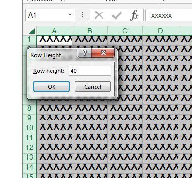 - 列の希望の高さを入力してから、わかりましたボタン。デフォルトの行の高さは15であるため、それを行の高さを選択するためのベースとして使用できることに注意してください。正しい列の高さを見つける前に、いくつかの異なる列の高さを試す必要があるかもしれません。
