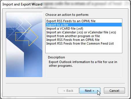 ステップ5:ファイルへのエクスポートを選択し、[次ボタン。