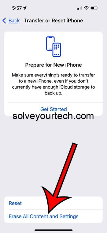 ステップ5:「すべてのコンテンツと設定を消去」を選択します