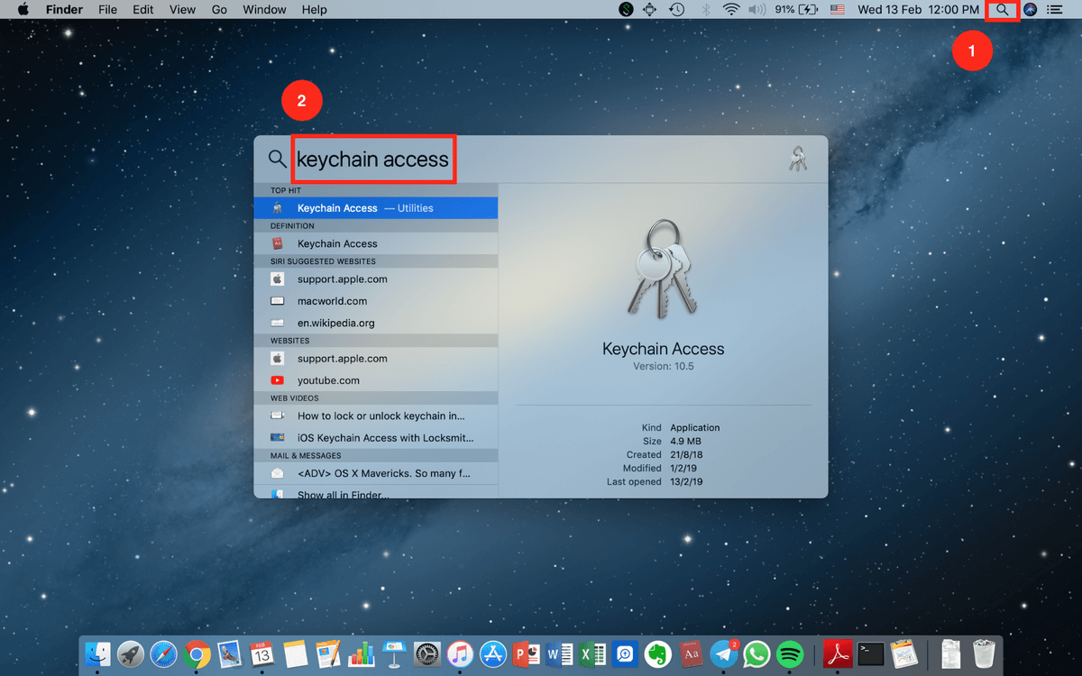 まず、キーチェーンアプリを開きます。 Spotlight検索で起動できます。